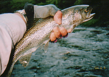 釣りして行きます。それでも魚影は濃く、ポイントごとに中型のニジマスが掛ってくれ