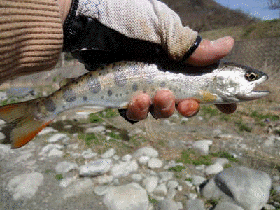 小さいけれどようやく釣れた綺麗なヤマメ!